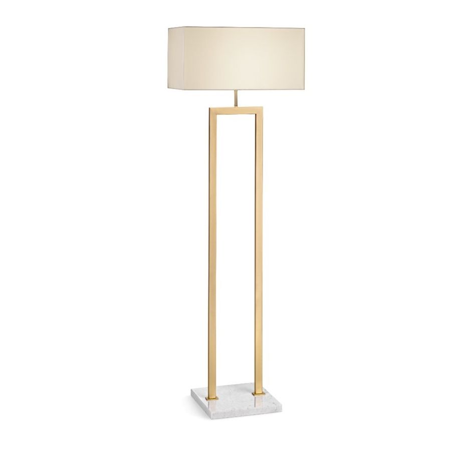 A neoclassical-style brass floor lamp with a Carrara marble base and lampshade is a piece of furniture of great elegance. Its main body is crafted from brass, giving it a refined shine and solidity, while the Carrara marble base adds a touch of luxury and prestige.