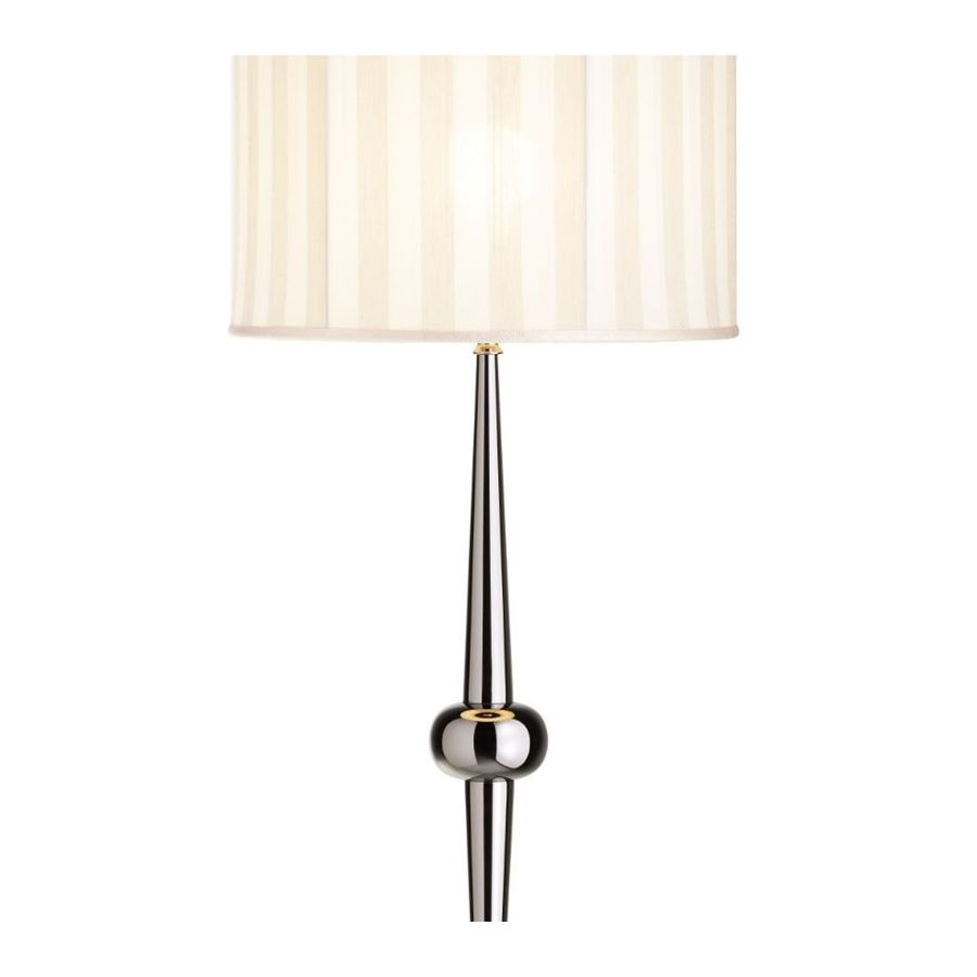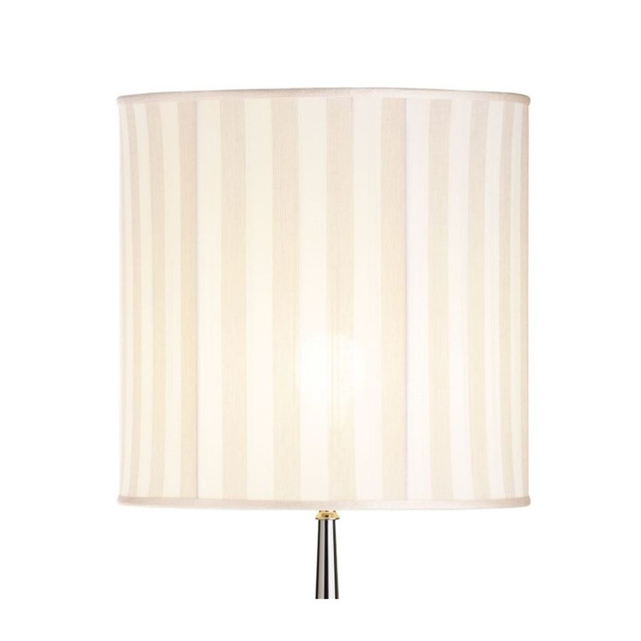 Floor lamp with an elegant design, perfect for enhancing your decor with style. Featuring a metallic structure and a lampshade made of striped fabric in an English style, it harmoniously complements the design of the chandelier, creating a refined and welcoming atmosphere. Ideal for adding a touch of class to any space.