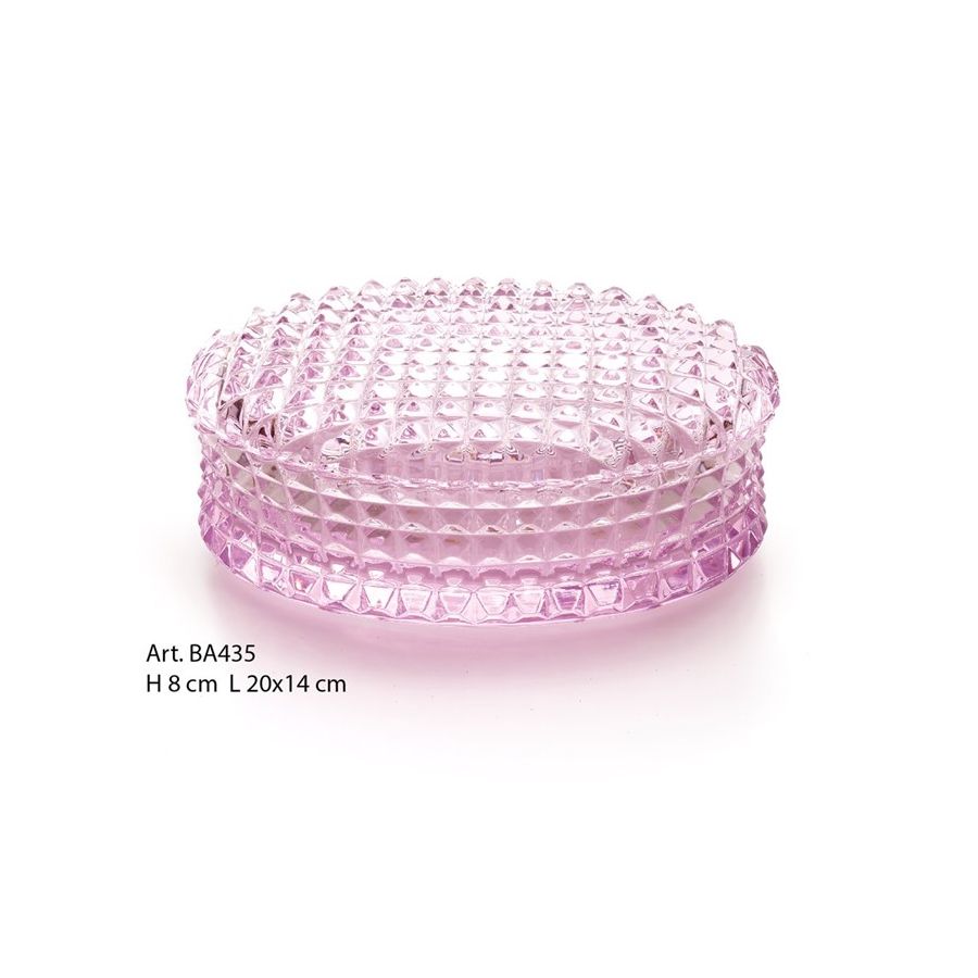 Jewelry box in pink italian Crystal hand-cutted -diamond cut- Functional elements that create an extremely elegant, welcoming and high-value bathroom.