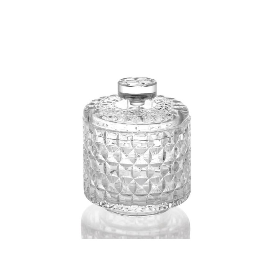 Circle Set, Italian hand-cut crystal set with three-dimensional circles pattern. Crystal Pb 24% Jewellery box. Functional elements that create an extremely elegant, welcoming and high-value bathroom.