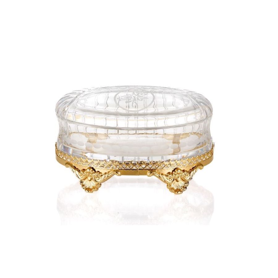 Rose set Jewellery box in Italian hand-cut crystal of Pb24% with an engraving of matt rose.