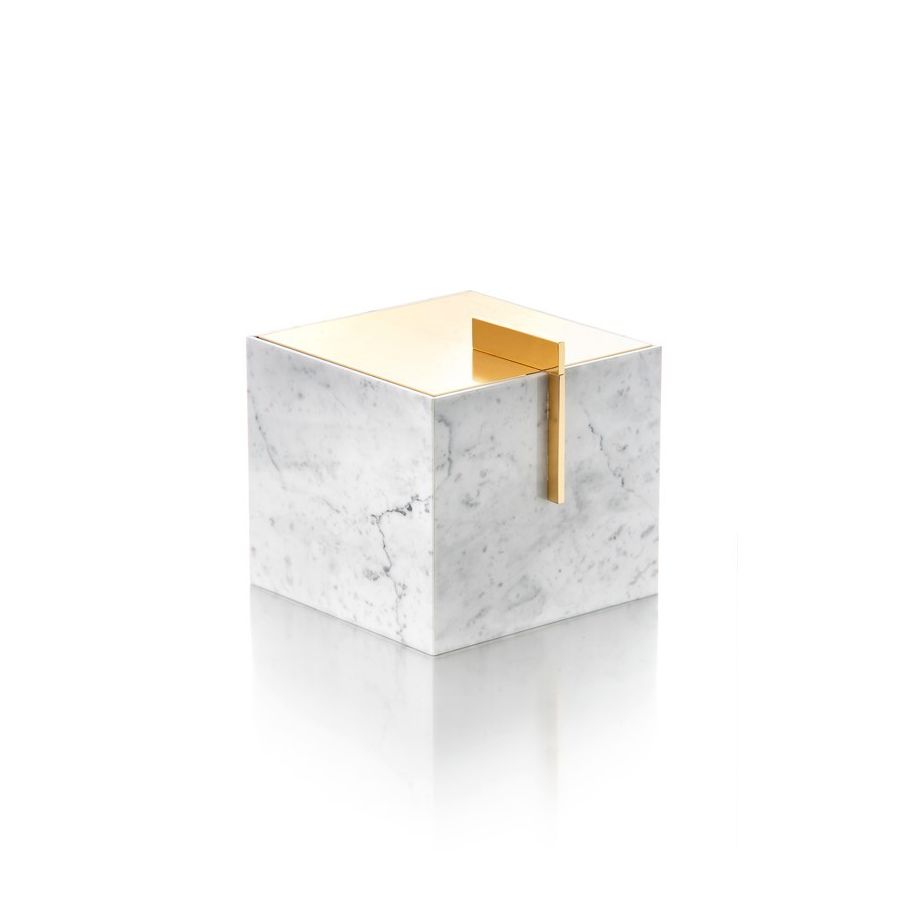 Jewellery box in Carra Marble decorated with gold 24K brass elements. Functional elements that create an extremely elegant, welcoming and high-value bathroom.