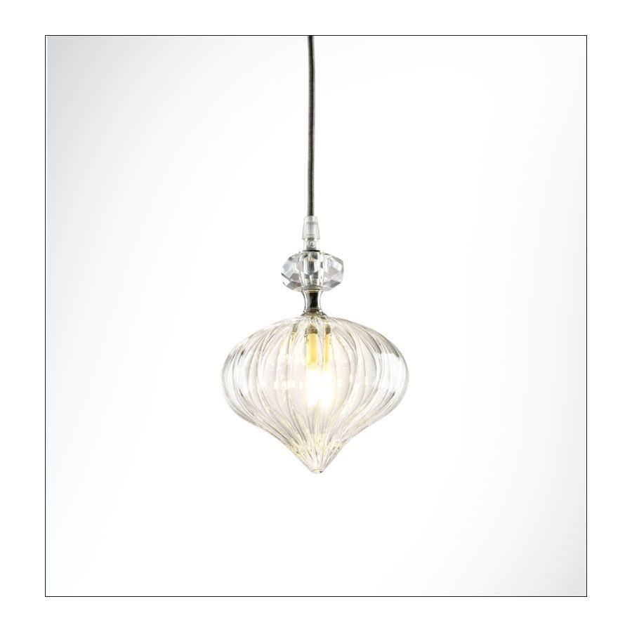 A chandelier composed of 1 blown and shaped glass element with internal lighting is an illuminating work of art. Each glass element has been crafted with great artisanal skill. Furthermore, you can customize the fabric-covered cable, available in various colors, adding a touch of personality and style to the chandelier.