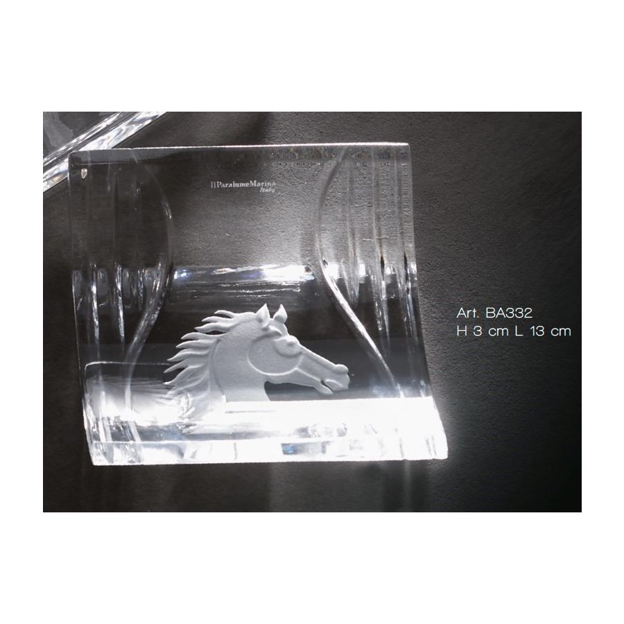Soap dish in italian hand-cutted crystal with engraved horse image. Functional elements that create an extremely elegant, welcoming and high-value bathroom.