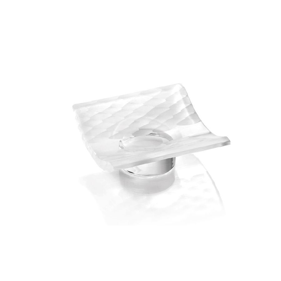 Hexagon Set made of Italian crystal cut by hand with a fine matt hexagonal design. Soap Dish. Functional elements that create an extremely elegant, welcoming and high-value bathroom.