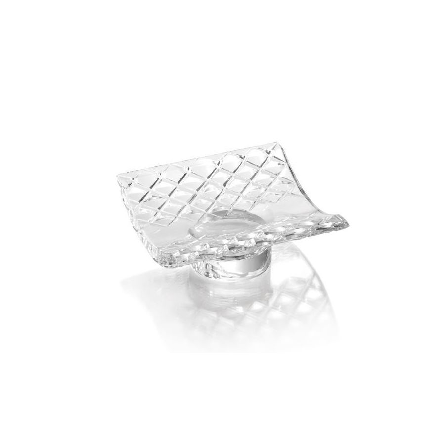 Italian hand-cut crystal set with three-dimensional rhombus pattern. Soap Dish. Functional elements that create an extremely elegant, welcoming and high-value bathroom.