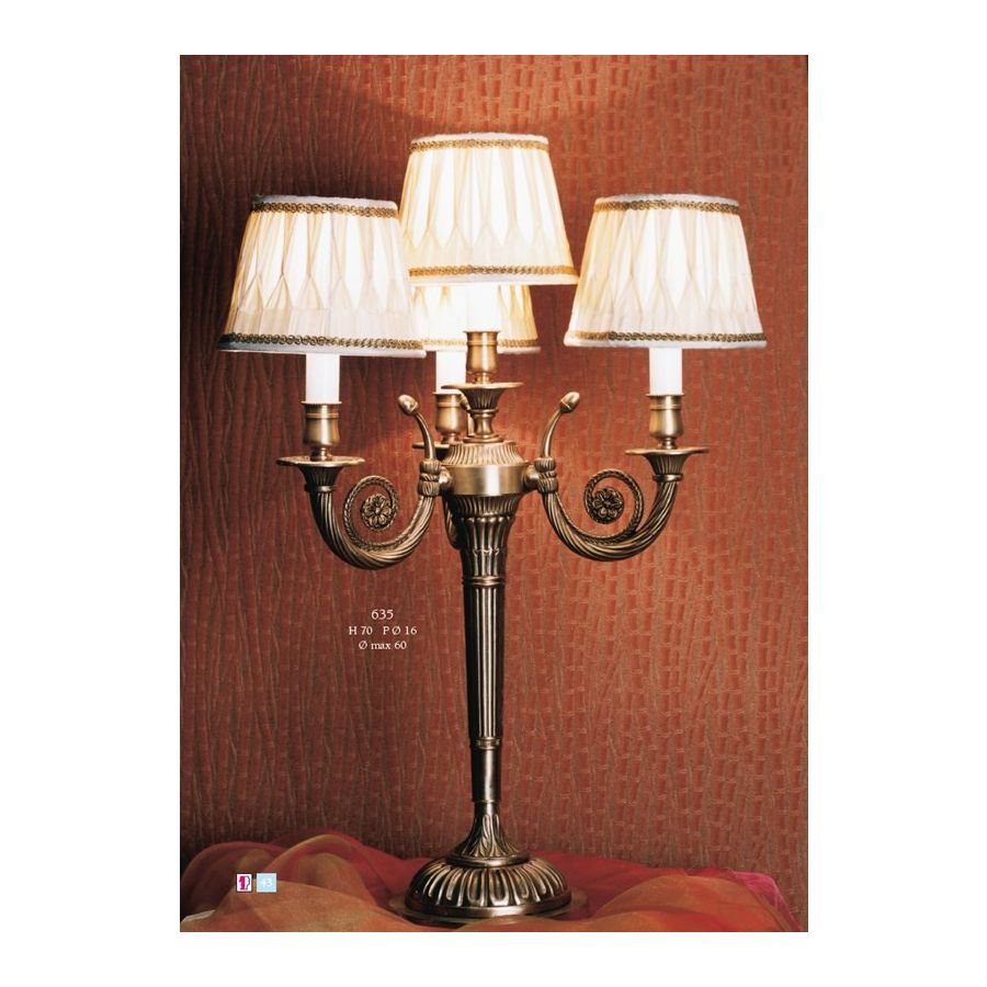 Baroque lamp with 4 lights with lampshades. Lighting fixture that diffuses the light into the surrounding environment with great effect, creating a warm and welcoming atmosphere.