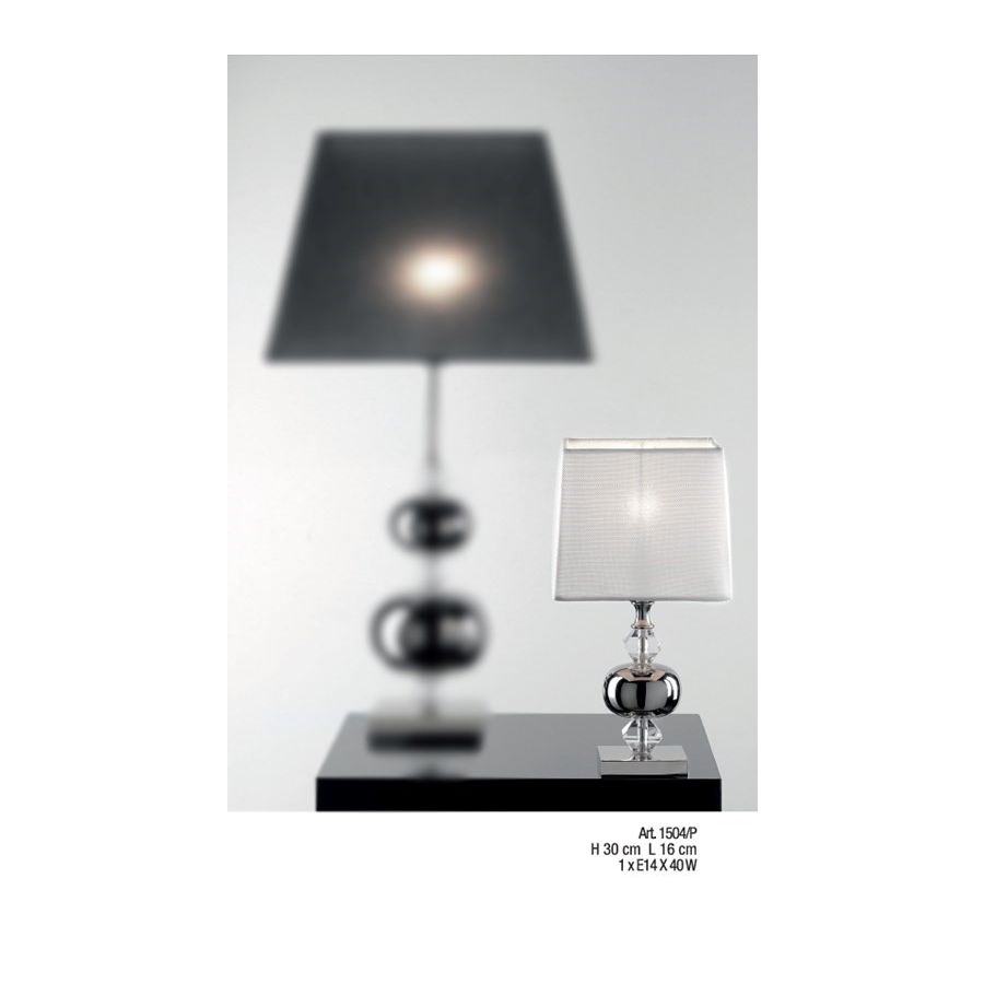 Table lamp with nikel spheres and crystals. Lighting item that diffuses the light with great effect in the surrounding environement creating a warm and welcoming atmosphere.