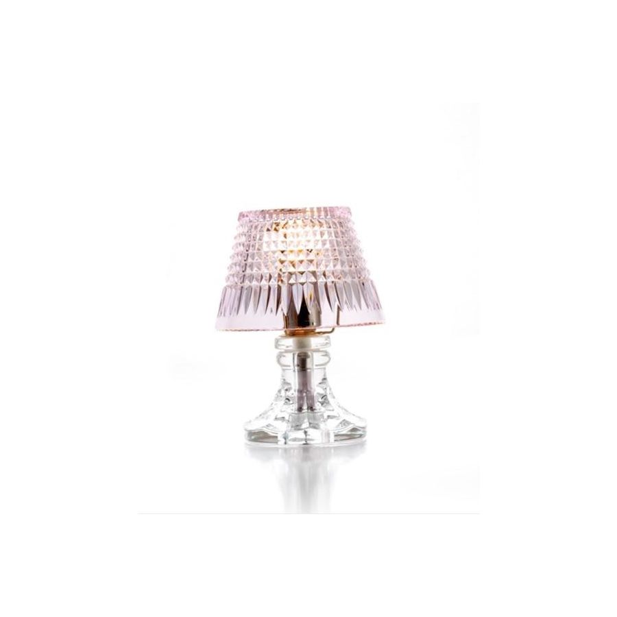 Table lamp with clear crystal lampshade. Lighting item that diffuses the light with great effect in the surrounding environement creating a warm and welcoming atmosphere.