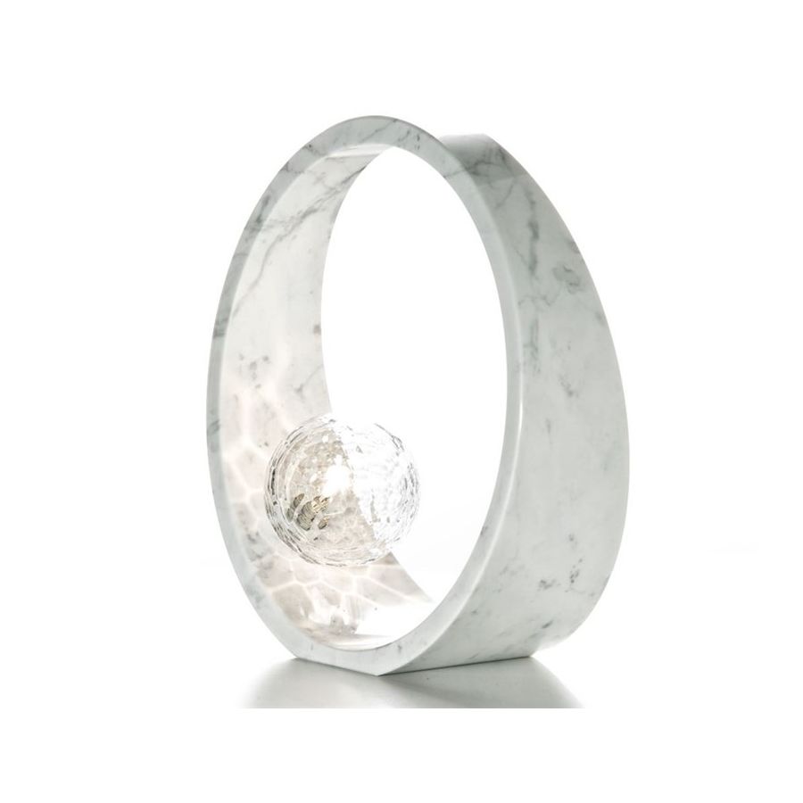 MARBLE: Table lamp in Carrara marble and Italian Crystal cut by hand. Lighting item that diffuses the light with great effect in the surrounding environement creating a warm and welcoming atmosphere.