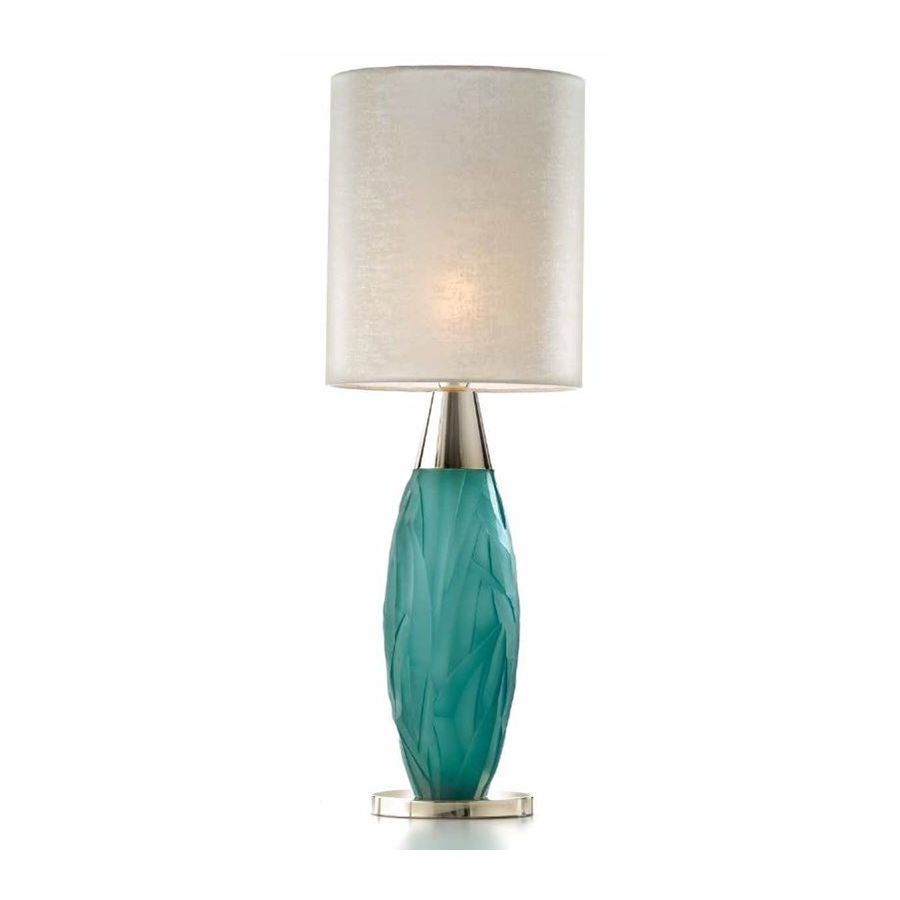 Table lamp in matt turquoise Italian crystal hand-cut and fabric lampshade on pvc. Lighting item that diffuses the light with great effect in the surrounding environement creating a warm and welcoming atmosphere.