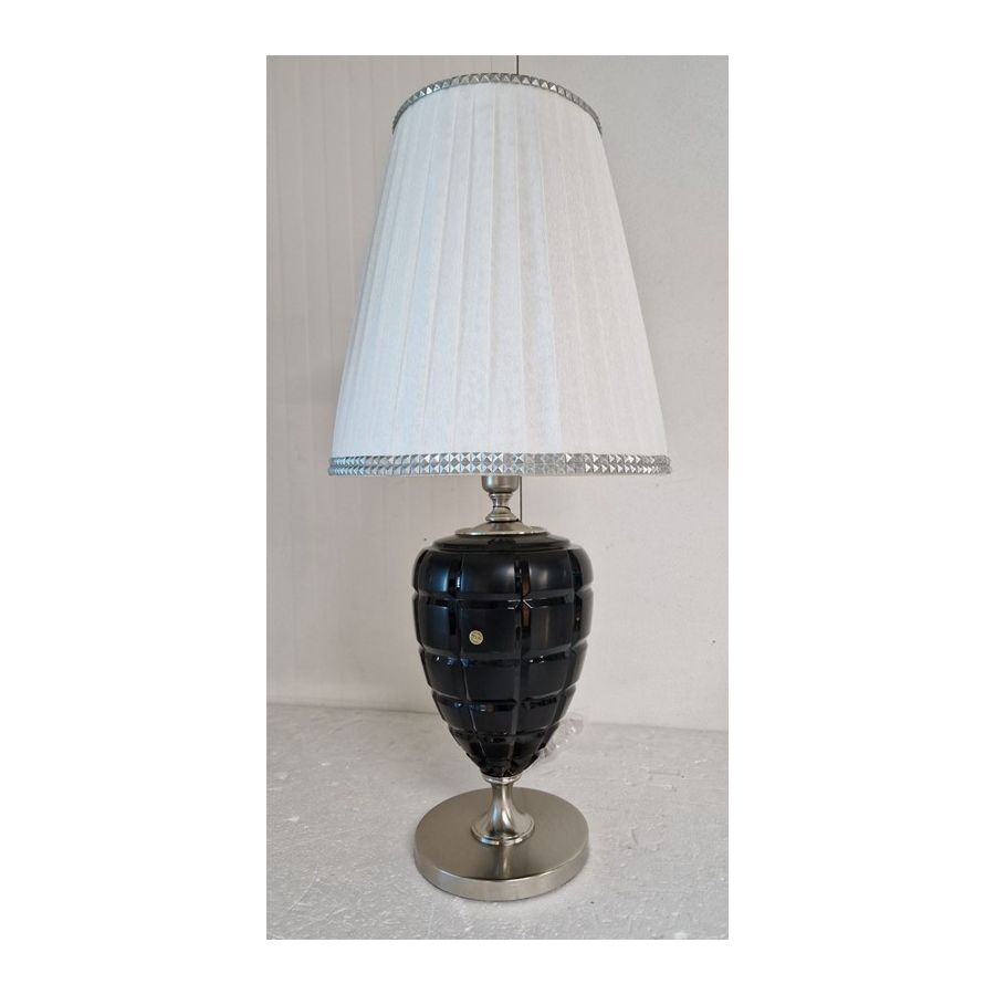 Table lamp in black crystal and white silk lampshade that creates an elegant atmosphere.