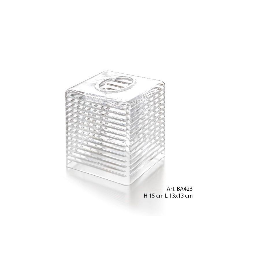 Italian hand-cutted crystal tissue box. Functional elements that create an extremely elegant, welcoming and high-value bathroom.