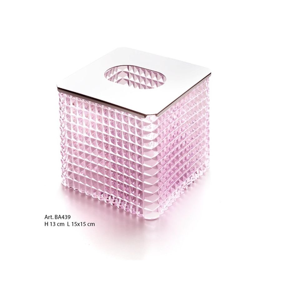 Tissue box in pink italian Crystal hand-cutted and brass -diamond cut- Functional elements that create an extremely elegant, welcoming and high-value bathroom.