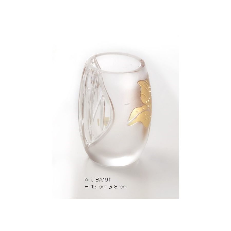 Toothbrush holder in italian hand-cutted crystal with golden lilies. Functional elements that create an extremely elegant, welcoming and high-value bathroom.