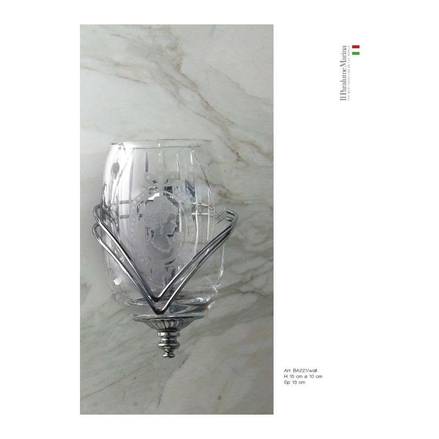 Toothbrush holder ON WALL in clear Italian crystal with hand-carved lady portrait cameo and chrome brass element fixing. Functional elements that create an extremely elegant, welcoming and high-value bathroom.