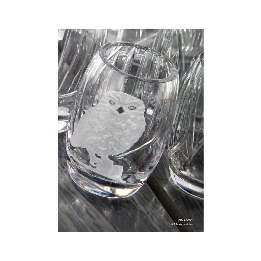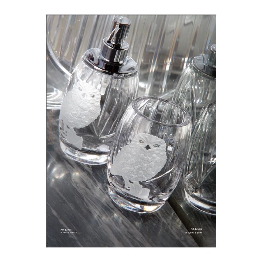 Italian Crystal toothbrush holder with hand-engraved owl figure. Functional elements that create an extremely elegant, welcoming and high-value bathroom.