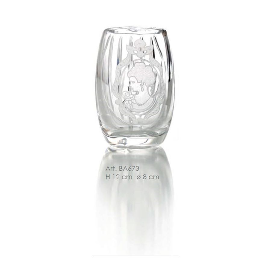 Toothbrush holder in clear Italian crystal with hand-carved lady portrait cameo. Functional elements that create an extremely elegant, welcoming and high-value bathroom.