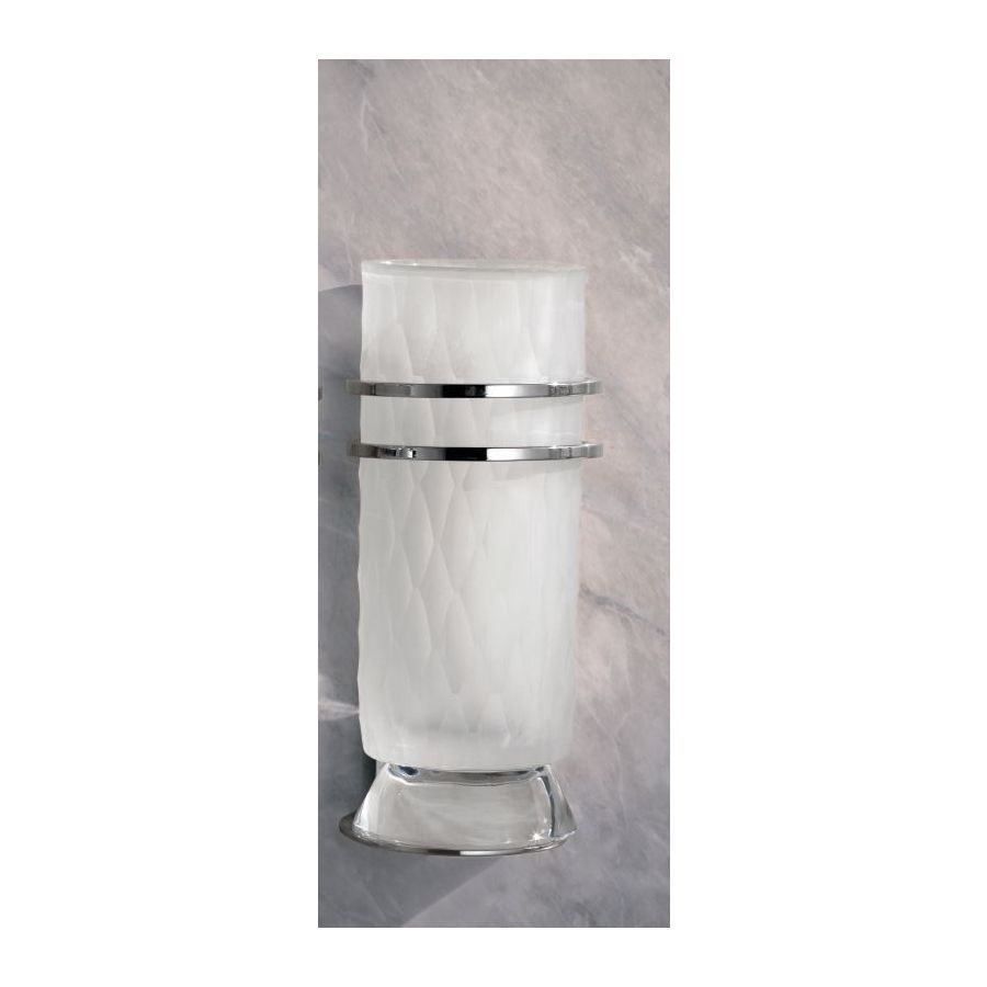 Hexagon Set made of Italian crystal cut by hand with a fine matt hexagonal design. Wall Toothbrush Holder. Functional elements that create an extremely elegant, welcoming and high-value bathroom.