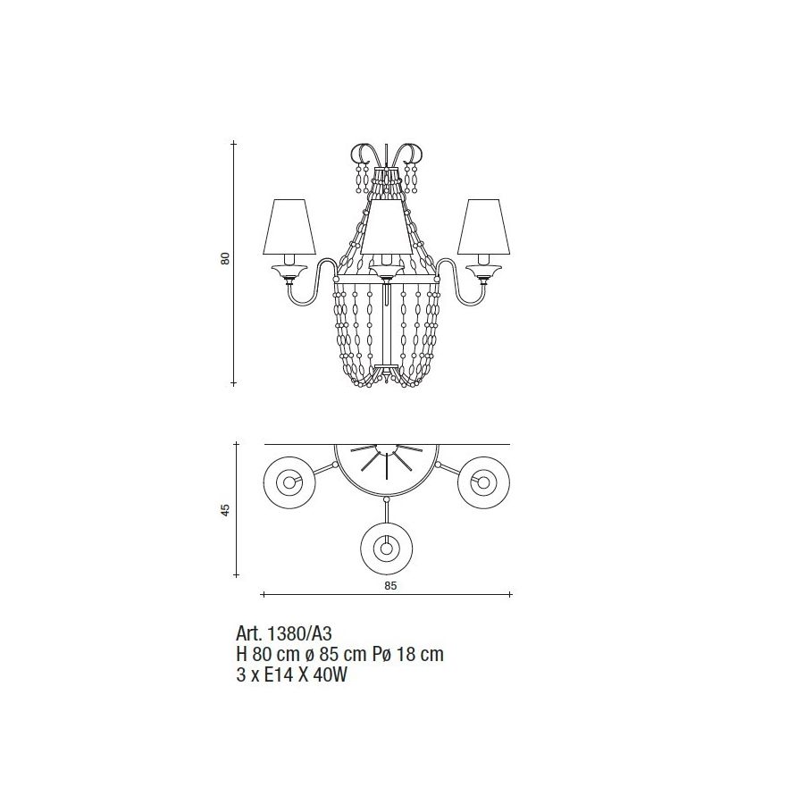 Bulbs: 3 x E14 x 40W| Mått (HxBxD): | cm: 80x85x45 / inch: 31.5"x33.46"x17.72" |