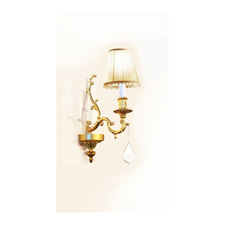 Wall Lamp in cast brass; Ivory lampshades; crystals Asfour with Murano glass beads. Lighting item that diffuses the light with great effect in the surrounding environement creating a warm and welcoming atmosphere.