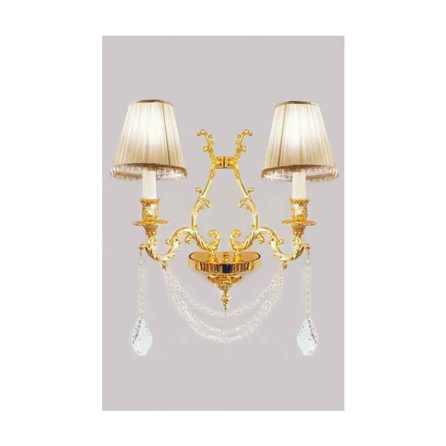 Wall Lamp in cast brass; Ivory lampshades; crystals Asfour on Murano glass beads. Lighting item that diffuses the light with great effect in the surrounding environement creating a warm and welcoming atmosphere.