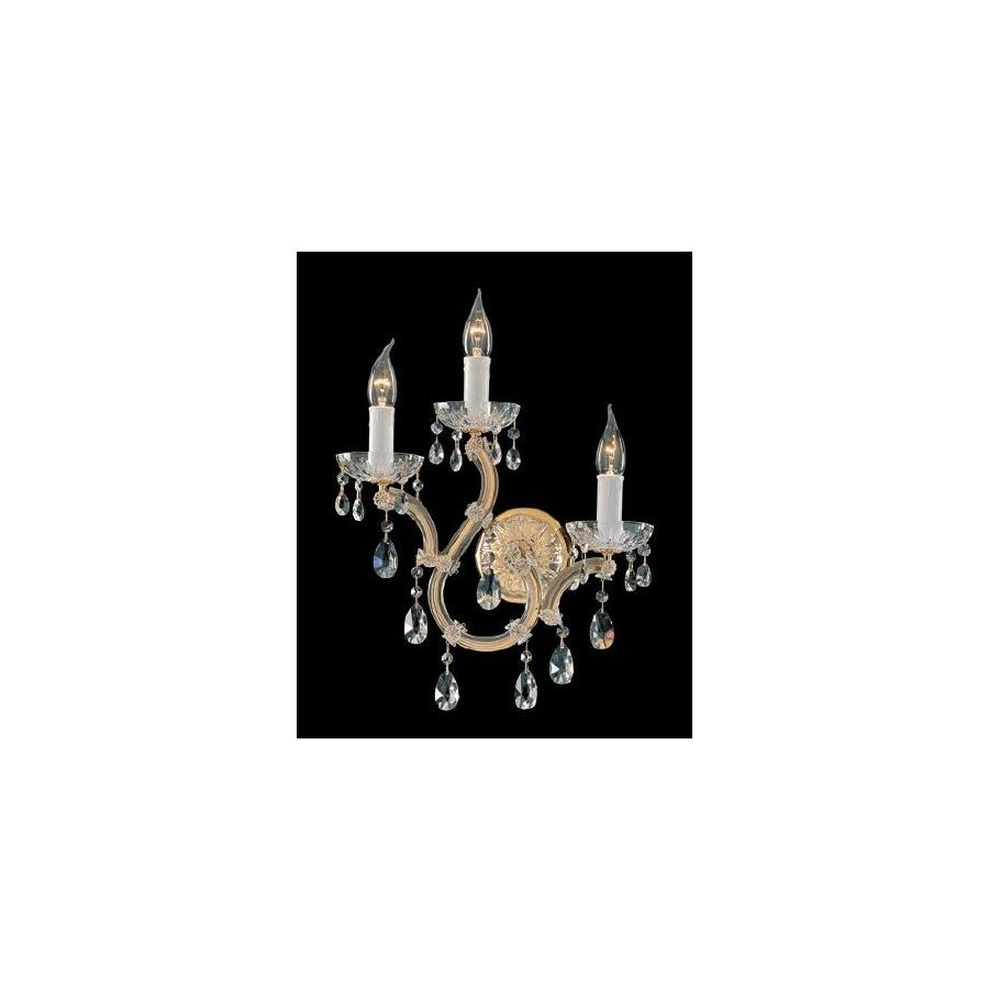 Mariateresa Wall Sconce with Gold plated metal frame covered by transparent glass arms and transparent Crystal pendants. Lighting item that diffuses the light with great effect in the surrounding environement creating a warm and welcoming atmosphere.