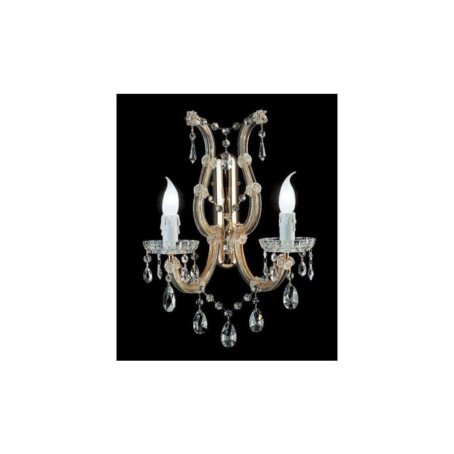 Mariateresa Wall Sconce with Gold plated metal frame covered by transparent glass arms and transparent Crystal pendants. Lighting item that diffuses the light with great effect in the surrounding environement creating a warm and welcoming atmosphere.