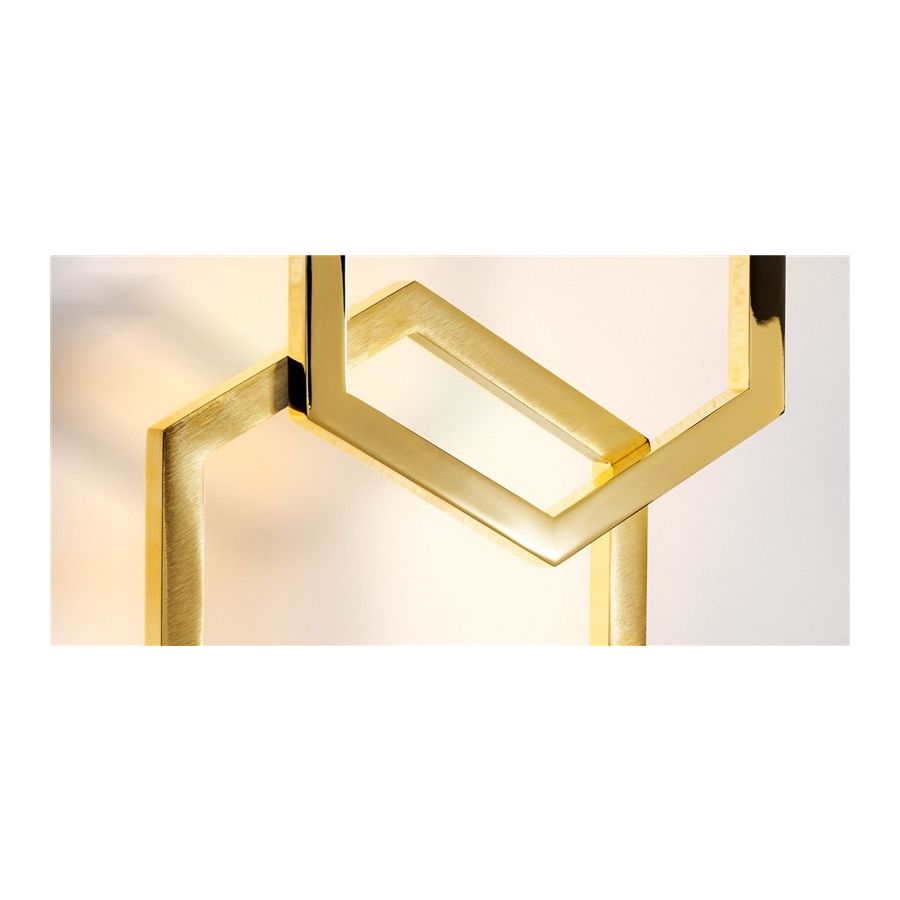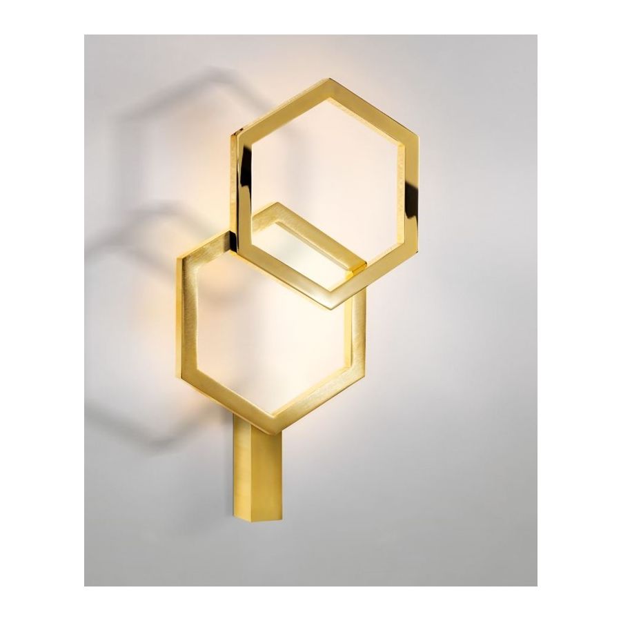 Hexagon collection wall sconce metal Brass with Strip Led. Driver included in the metal wall base. Lighting item that diffuses the light with great effect in the surrounding environement creating a warm and welcoming atmosphere.