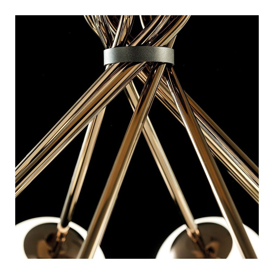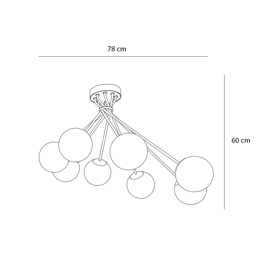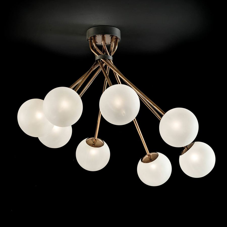 Tea is a ceiling lamp characterized by a simple design that recalls a bouquet of flowers. From the metal base rise stems of different heights, at the ends of which are placed spherical diffusers in frosted blown glass.