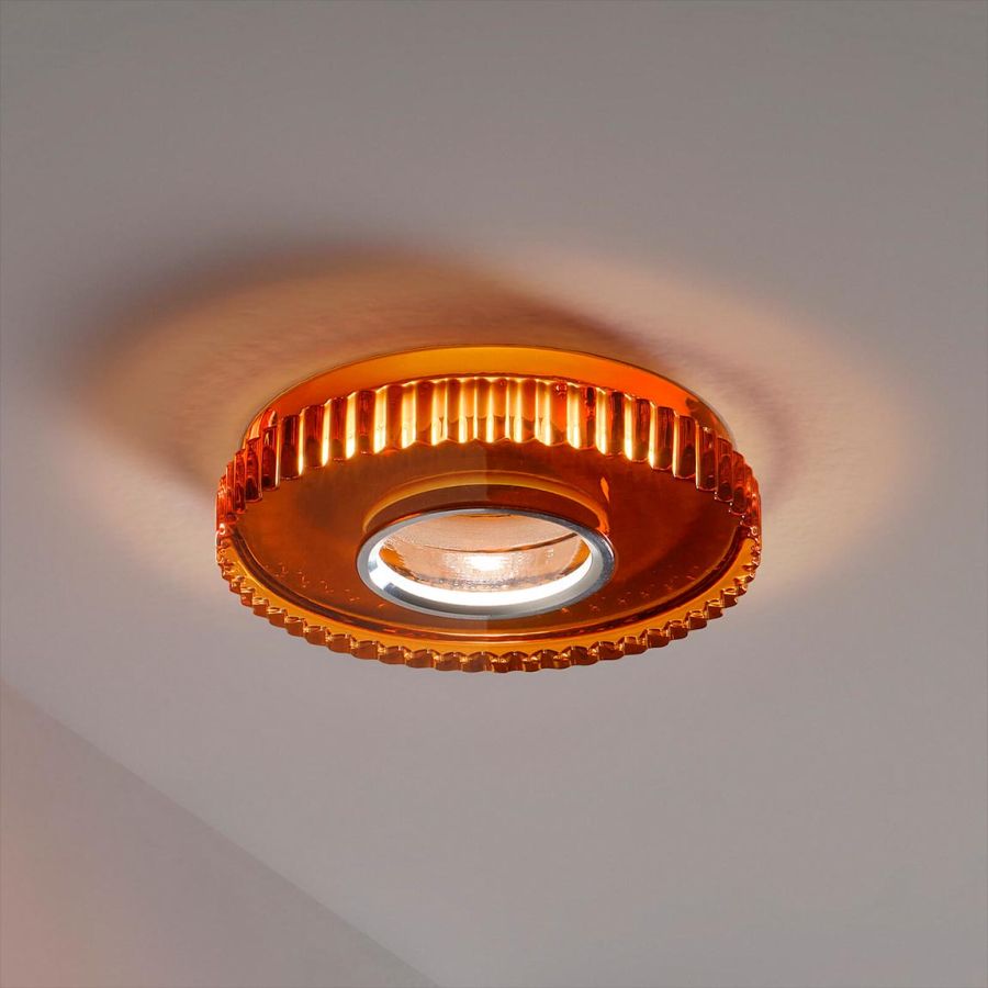 Spotlight in amber or transparent glass. Internal metal ring in chrome finish.
