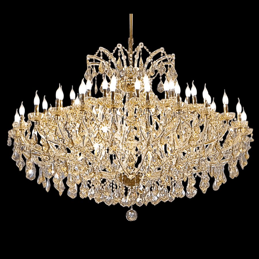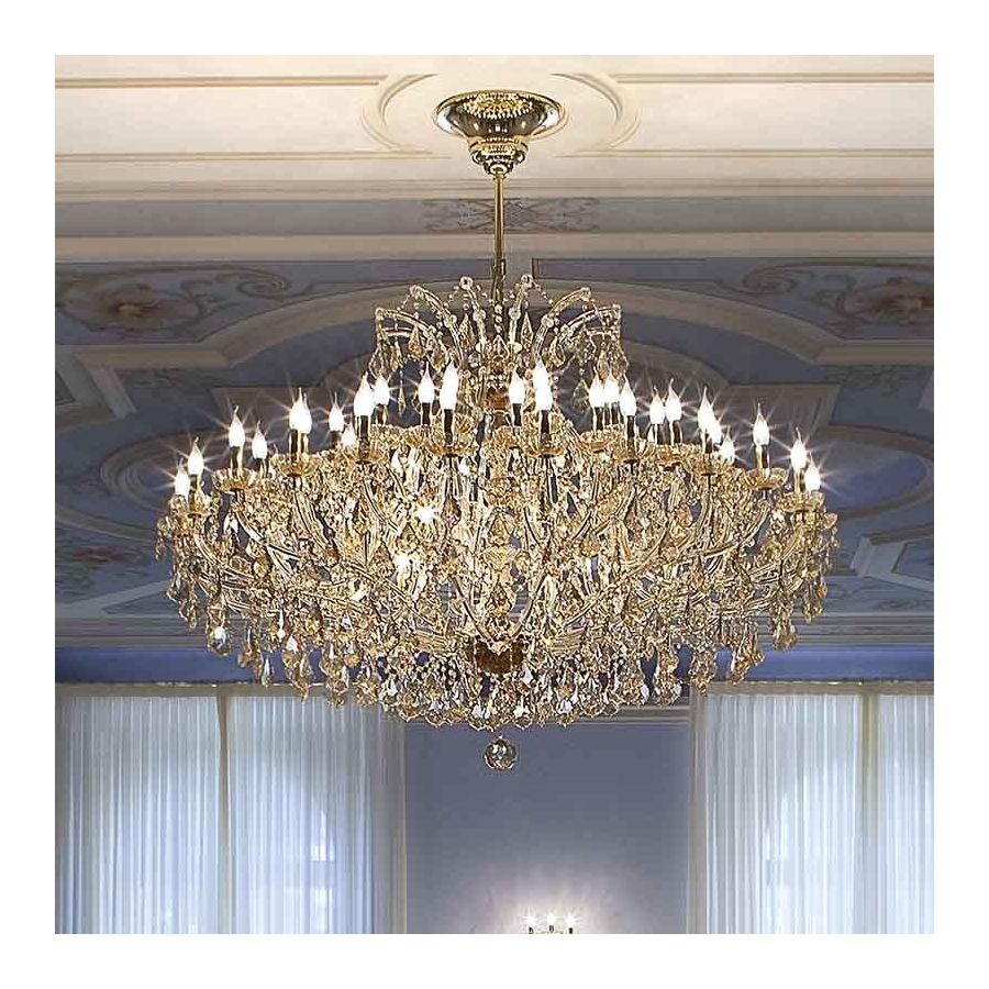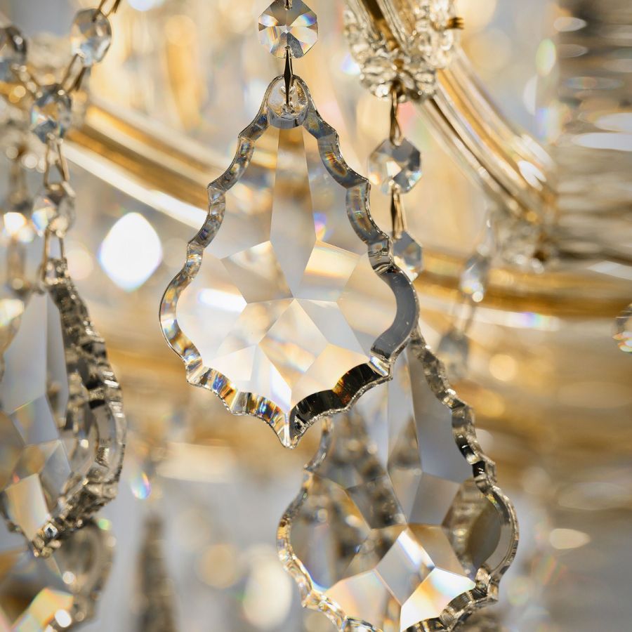 Chandelier Mariatheresa style, metal with gold finish, topaz glass pendants and details.