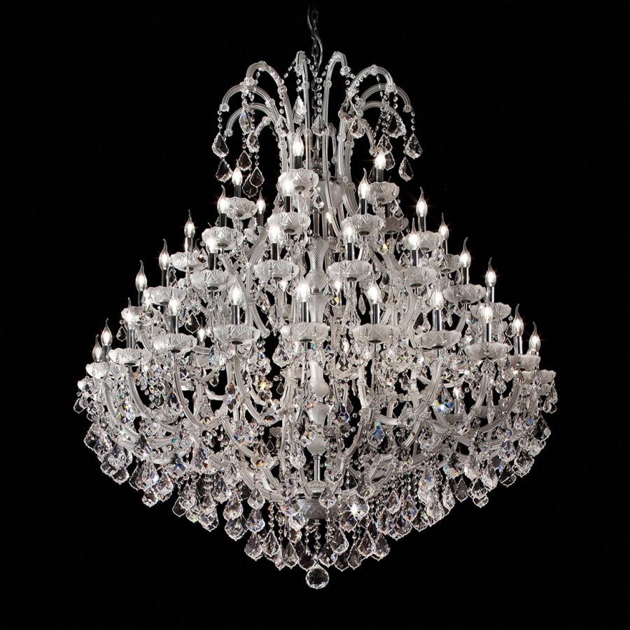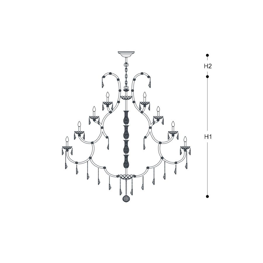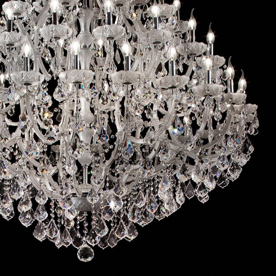 Chandelier Mariatheresa style, metal with chrome finish, glass pendants and details.