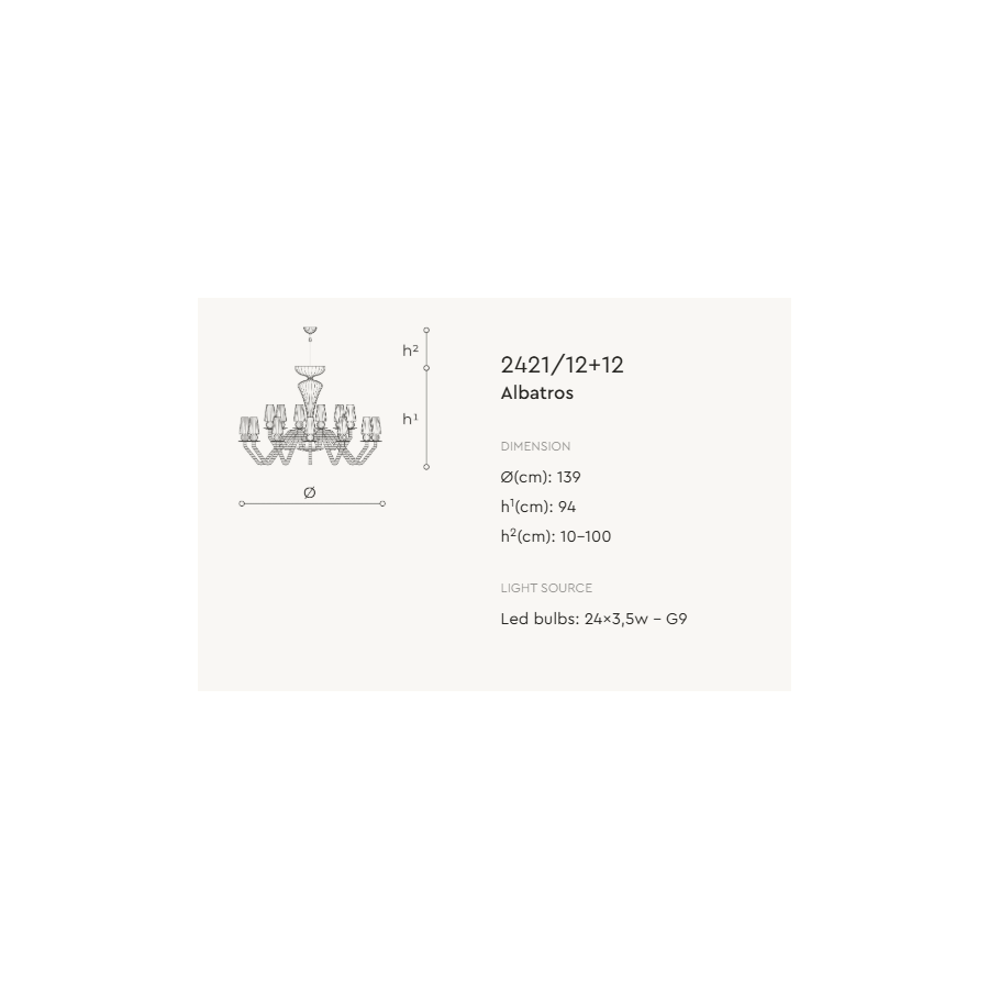 cm.: 198 (H1+H2) x 139 x 139 / inch.: 77.95" (H1+H2) x 54.72" x 54.72"
