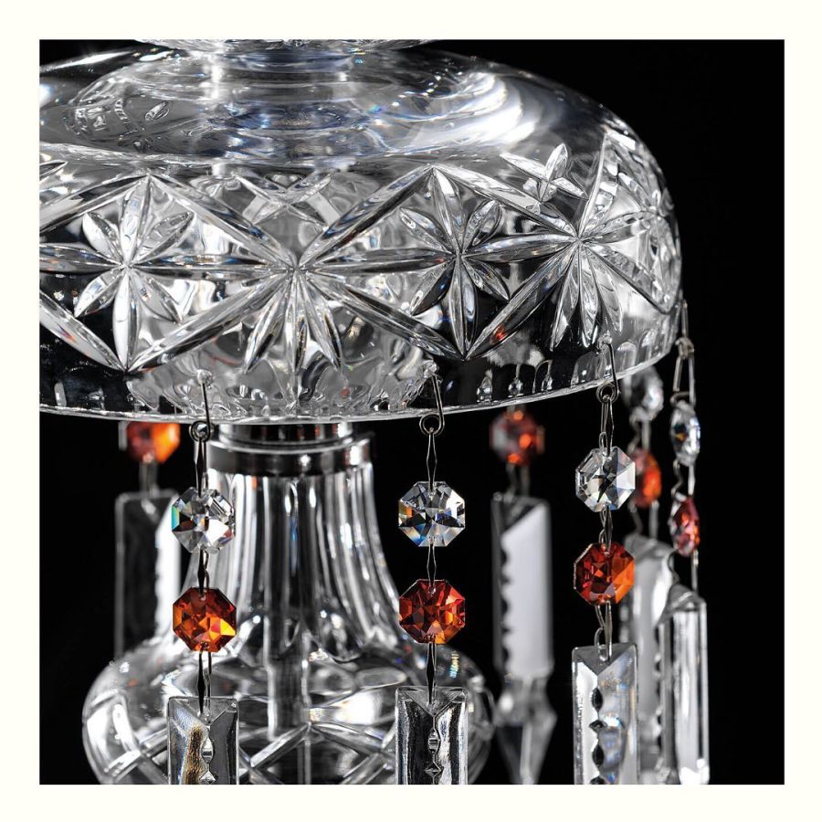 The Chanel chandelier is an iconic piece of Premium collection, with a magnetic personality that can attract attention for its timeless design. It is made of hand-carved crystal, transparent or black, embellished with burgundy pendants (or black) and supported by a metal structure with chrome finish. Crystal chandelier with Swarovski® Crystals.