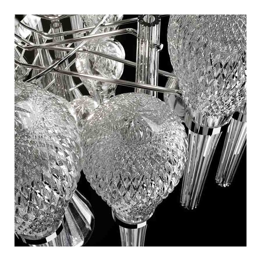 Chandelier in carved crystal, metal with nickel finish and crystal dust Swarovski elements.