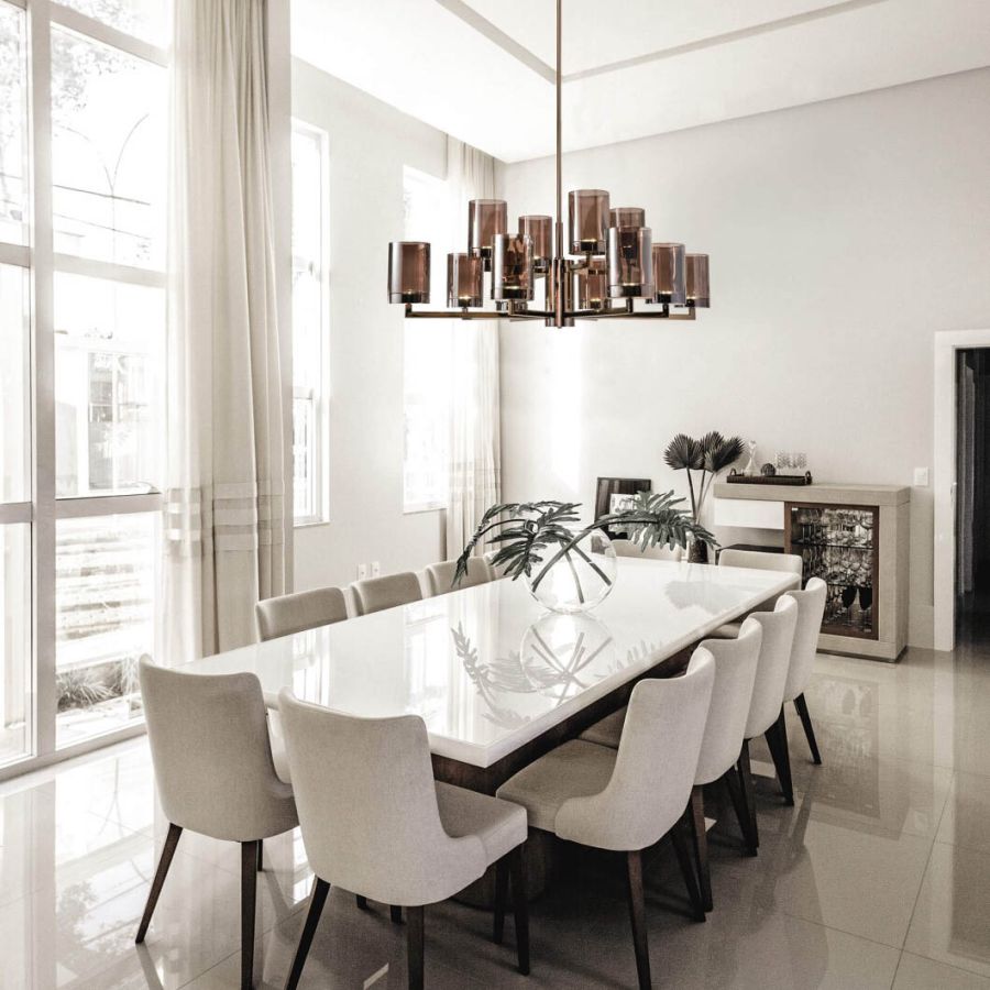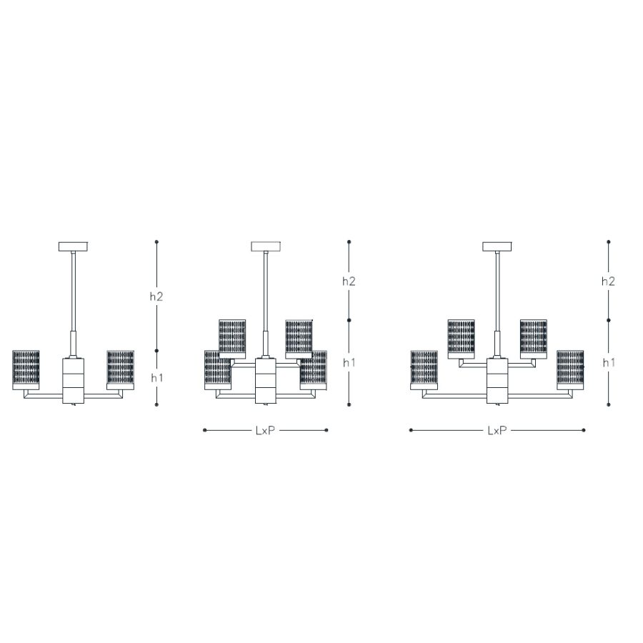 Chandelier with metal structure in light gold and chrome finish with hand cut crystal diffusers. Available in different dimensions.