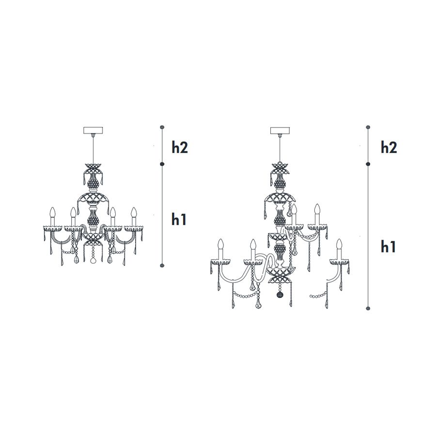 It uses many of the traditional glass processes, a classic that cannot undergo the transformations of fashions and time passing, rich in history, emotions and details that only crystal can give.It’s made of transparent carved crystal or teak, embellished with pendants.