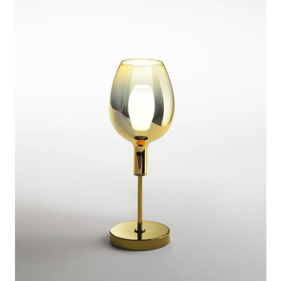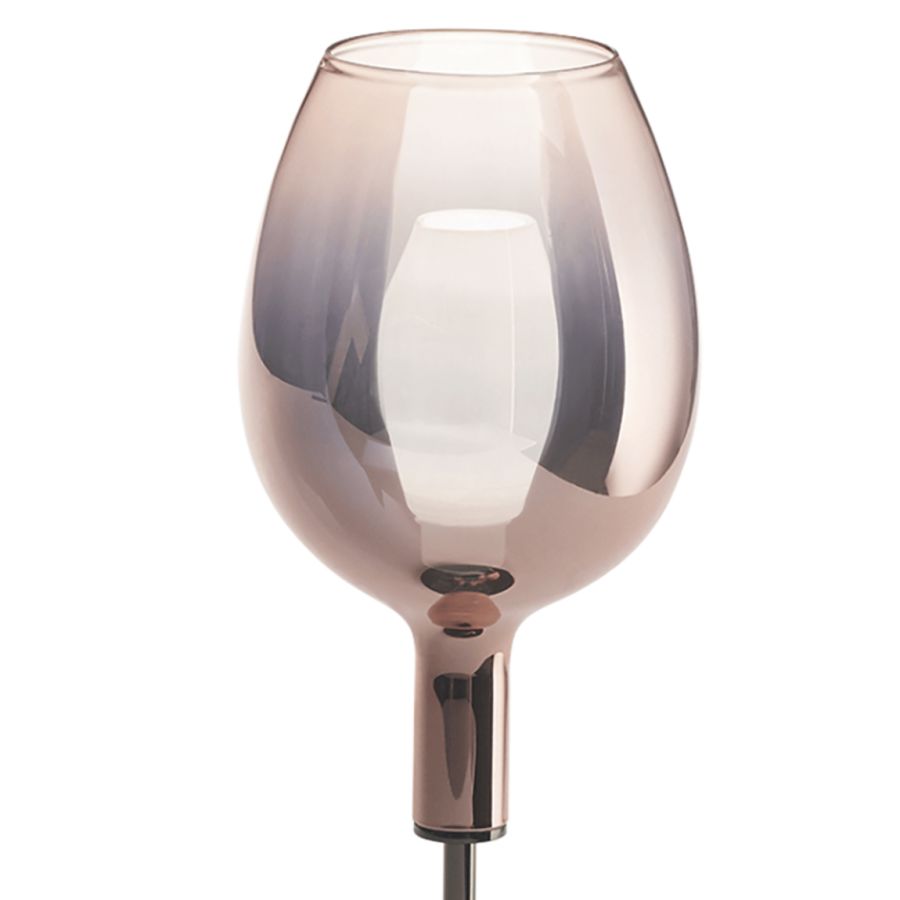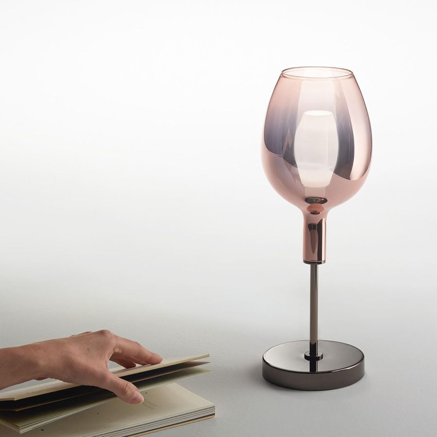 To create Rosé Cordless, the designer Danilo De Rossi aims to interpret the light in the environment with an unusual and ironic look, playing with the sinuous shape and its sparkling finishes, inspired by the classic outline of the wine chalice, reinterpreted in an unusual way in the form of a lamp with original metallic shades.