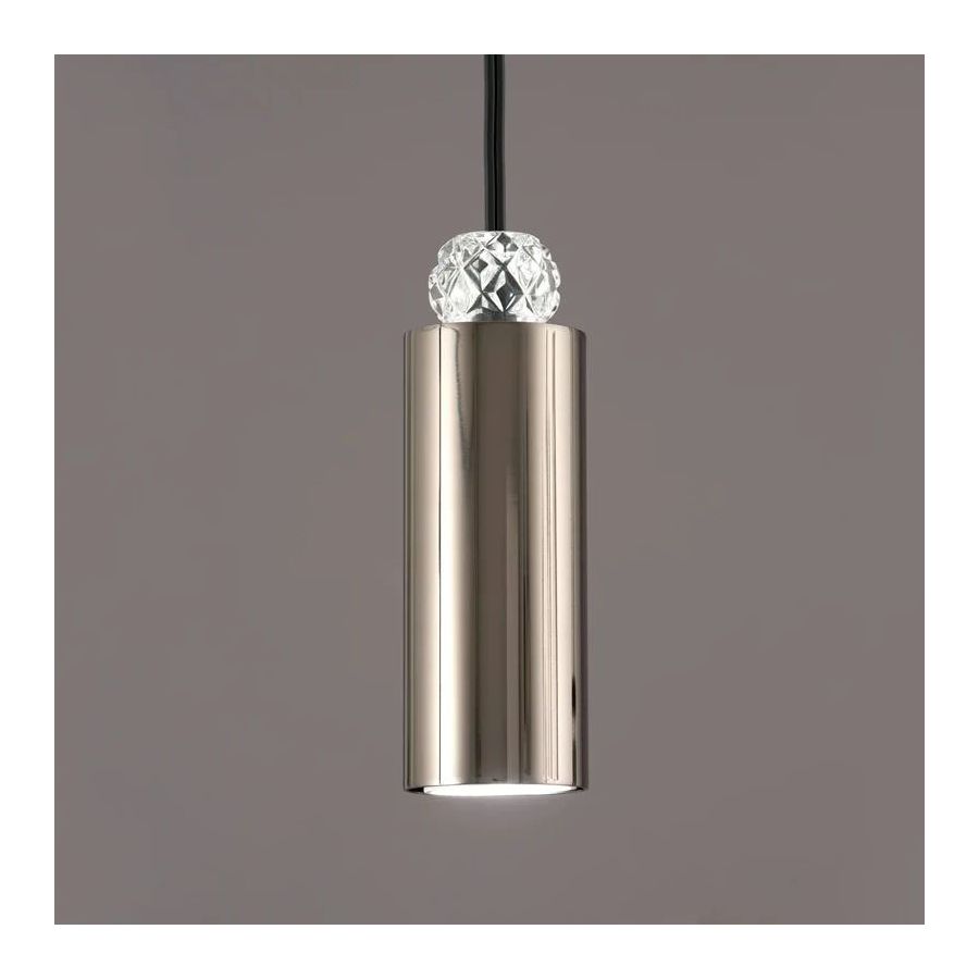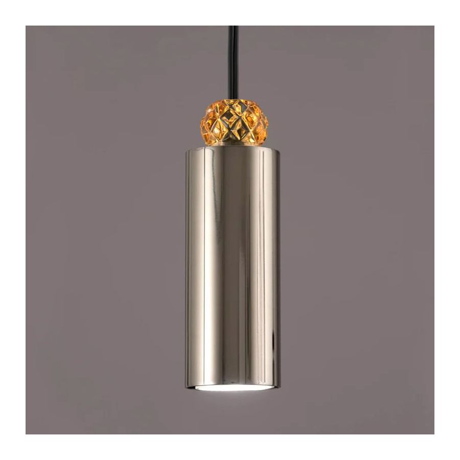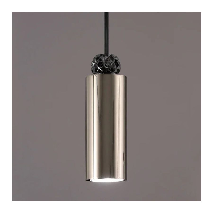 Pendant lamp with metal structure in iron grey finish with crystal detail available in different colours. LED direct light.