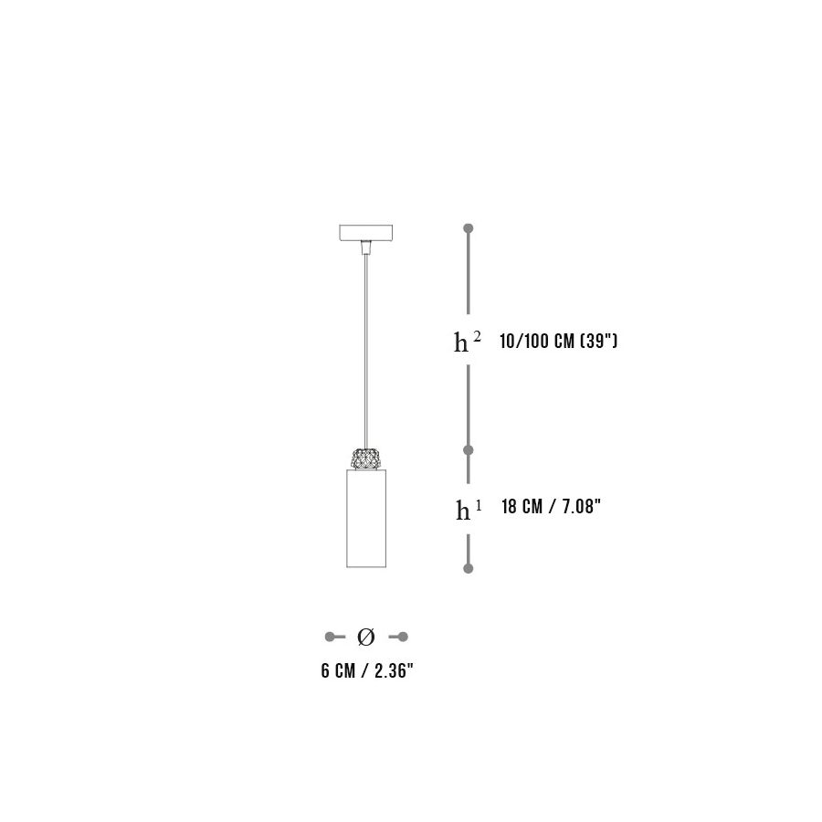 Height (h2) adjustable cable: 39" (10/100 cm)