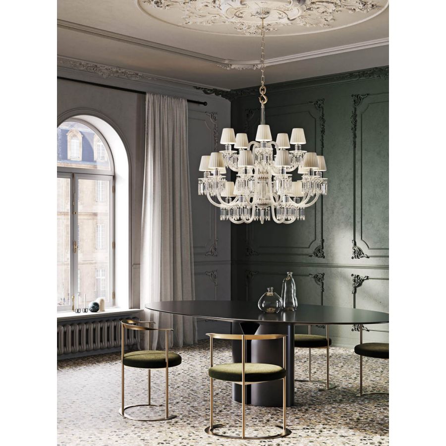 Egle is a chandelier inspired by the name itself: bright, radiant and shining with its own light. Made of glass and hand carved crystal with decorations that seem to bloom from the light source. This chandelier gives unique elegance to the environment.