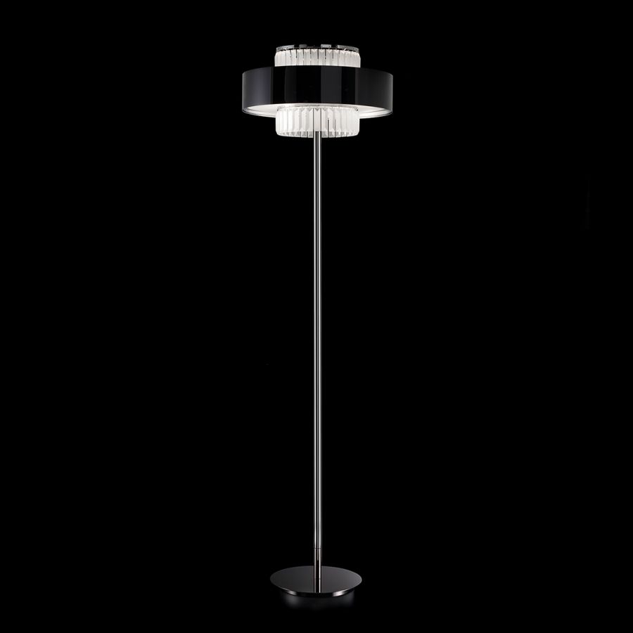 Floor lamp with metal structure in chrome finish, black metallic foil shade and satin glass pendants. Available in different colours.