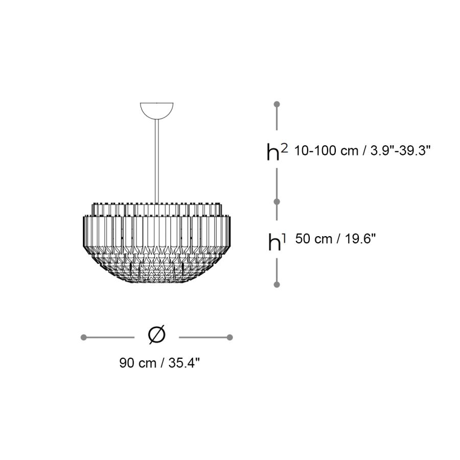 Details: H1 - adjustable cable length 10-100 cm / 3.9" - 39.3", H2 - pendant height without cable 50 cm / 19.6"