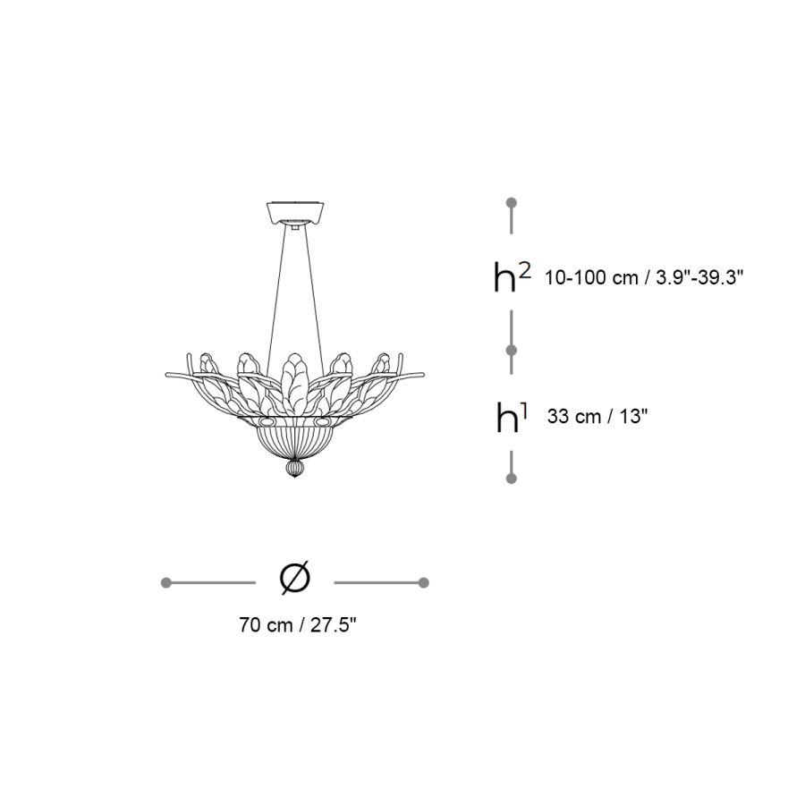 cm.: H1/33 x 70 x 70 / inch.: H1/13" x 27.5" x 27.5" (11 lights)