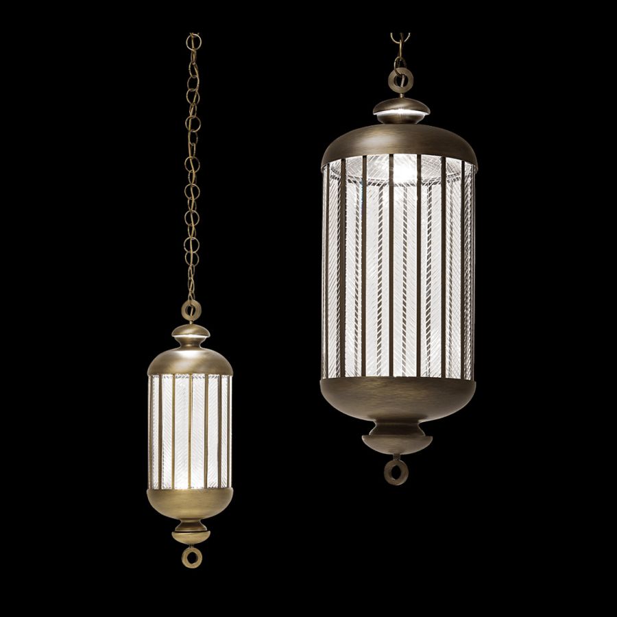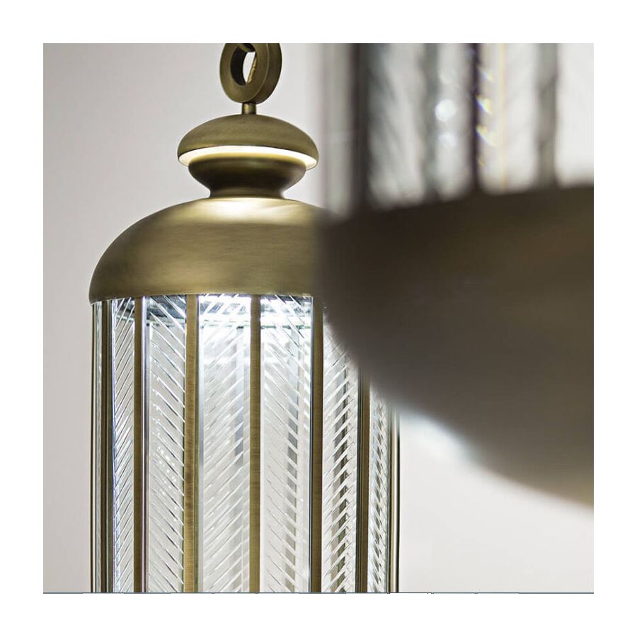 The Fata Morgana is collection of lamps that represents the traditional lantern, characterized by a 'cylindrical' shape rounded at the ends and embellished with transparent hand-carved glass.