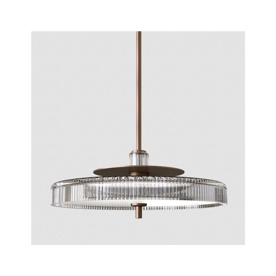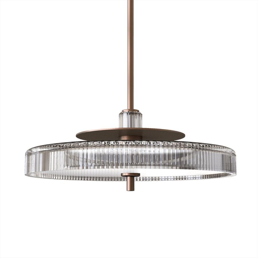 Gilda pendant lamp creates an atmosphere of style thanks to their simple and elegant shapes, combining the metal base with the carved crystal diffuser. A balance inspired by the beautiful 1950s design.
