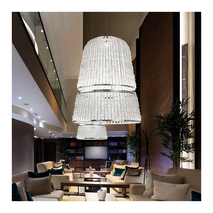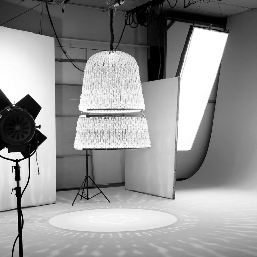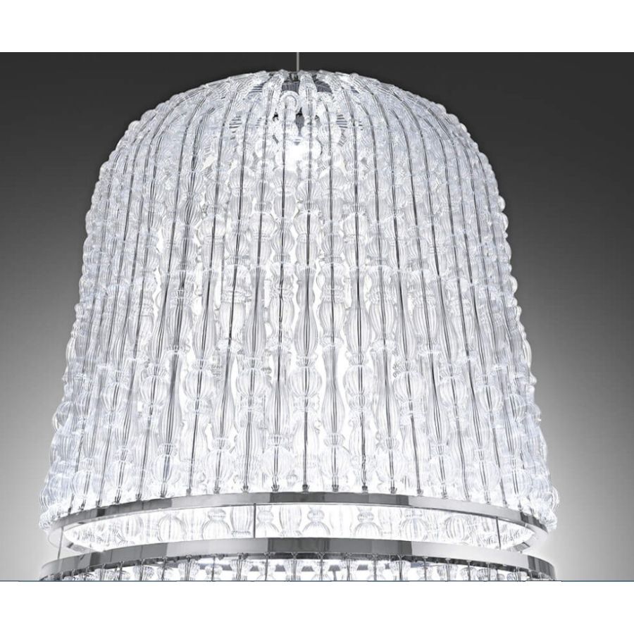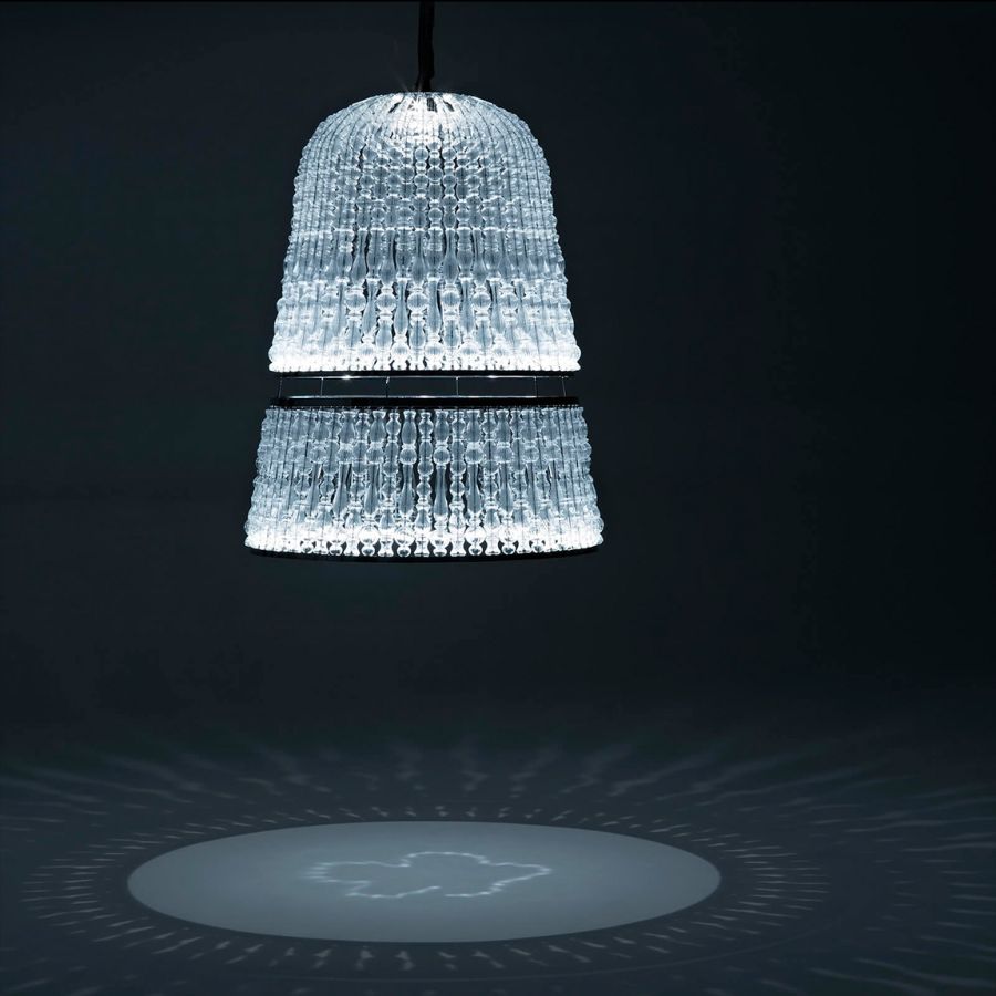 Crowns is a collection of Pendant lamps inspired by the beauty of imperial crowns. The LED source illuminates the blown glass elements that recall the shape of a large bell or an architectural dome, creating amazing light effects.