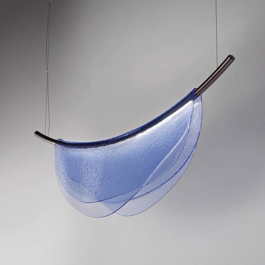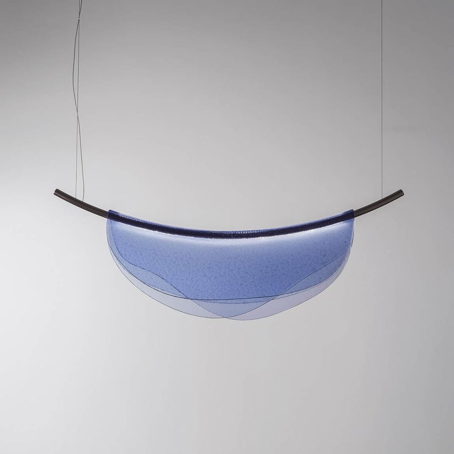 In these lamps, glass becomes “soft” like artist’s famous clocks, and overlaps in various layers giving the lamp the ethereal lightness of a veil.