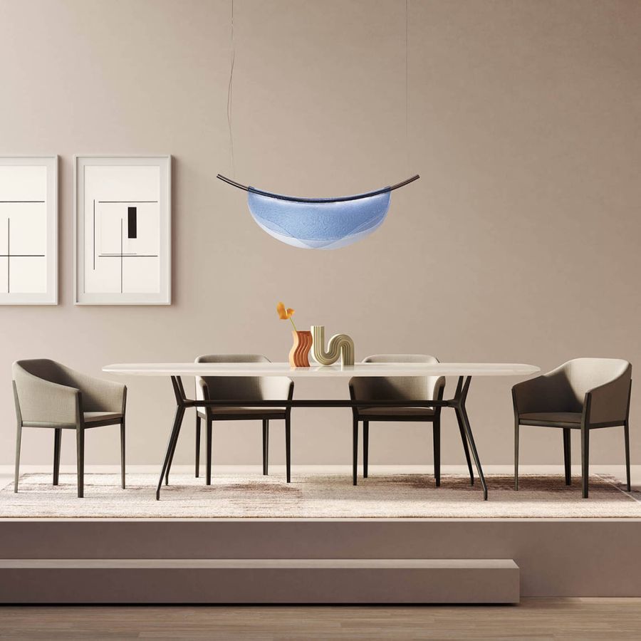 Dalì suspension by Italamp As in the art of Salvador Dalì, the surreal penetrates reality, changing the very nature of the most familiar objects. The two designers, NAVA+AROSIO , drew their inspiration from the Spanish artist, delineating the sinuous lines of these thermoformed glass lamps. Available in four colors; every time unique, never the same, always surprising.